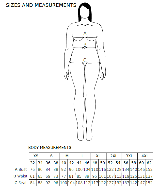 See images for size chart.