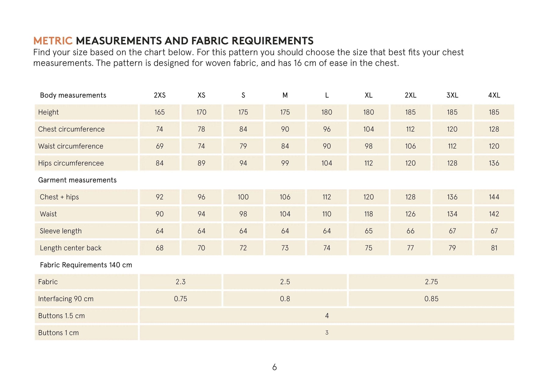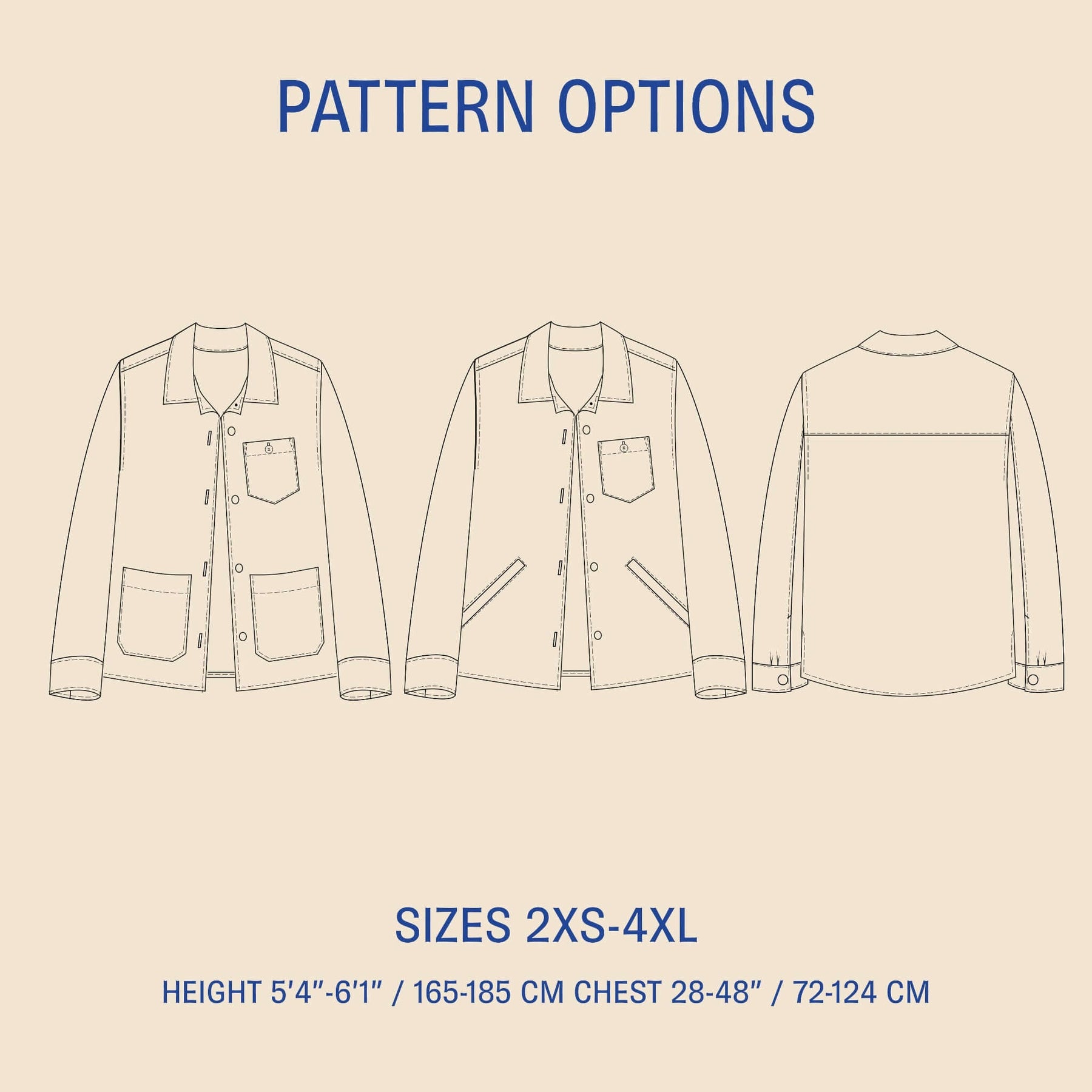 The Overshirt sewing pattern is a loose-fitting, long-sleeved shirt jacket with cuffed sleeves and patch pockets. It combines the qualities of a classic shirt with the practicality of a lightweight jacket. The pattern is inspired by the chore jacket. You can sew this pattern with a multitude of woven fabrics.
