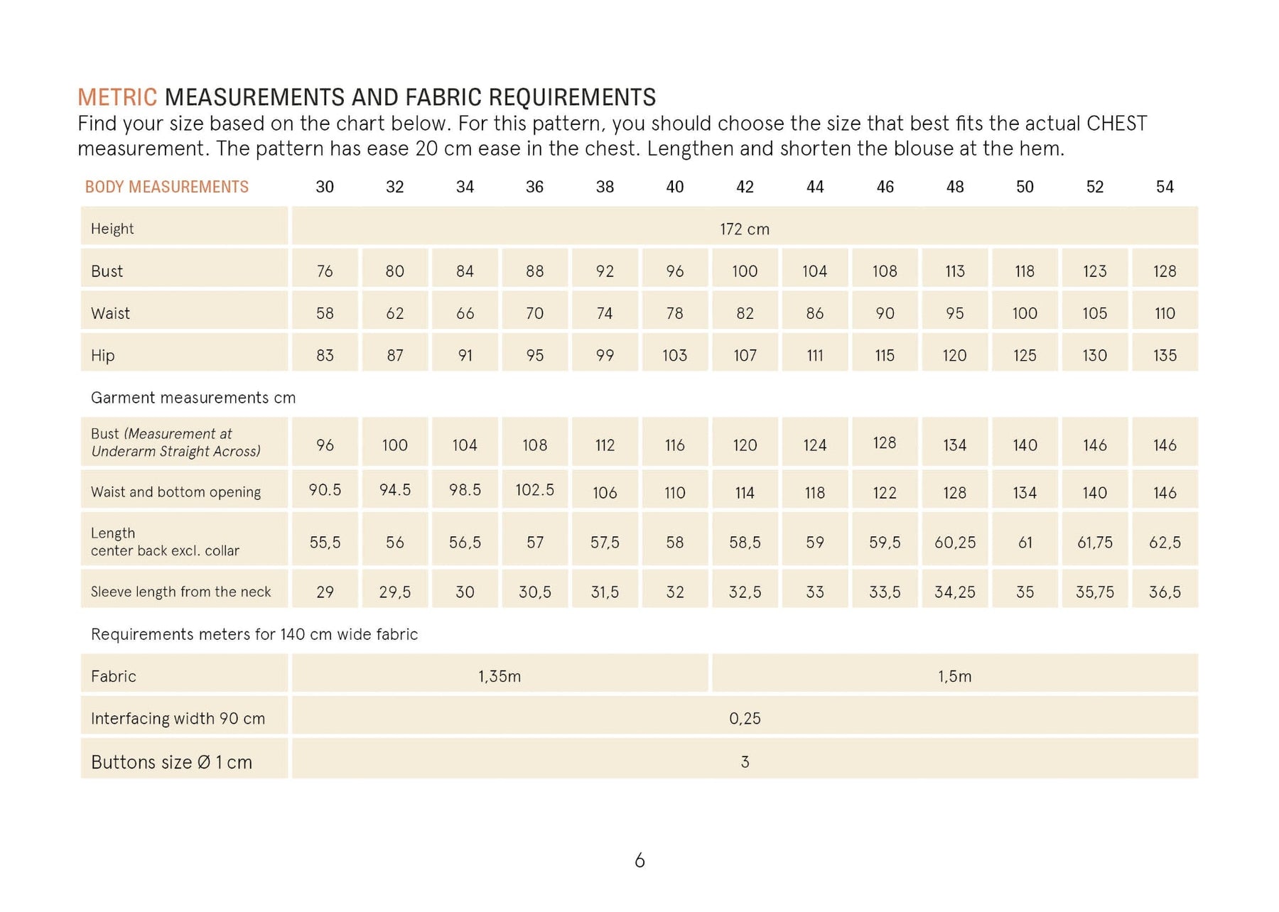 Flip through the images to find fabric requirements and measurements for the Polly Polo Shirt Sewing Pattern.