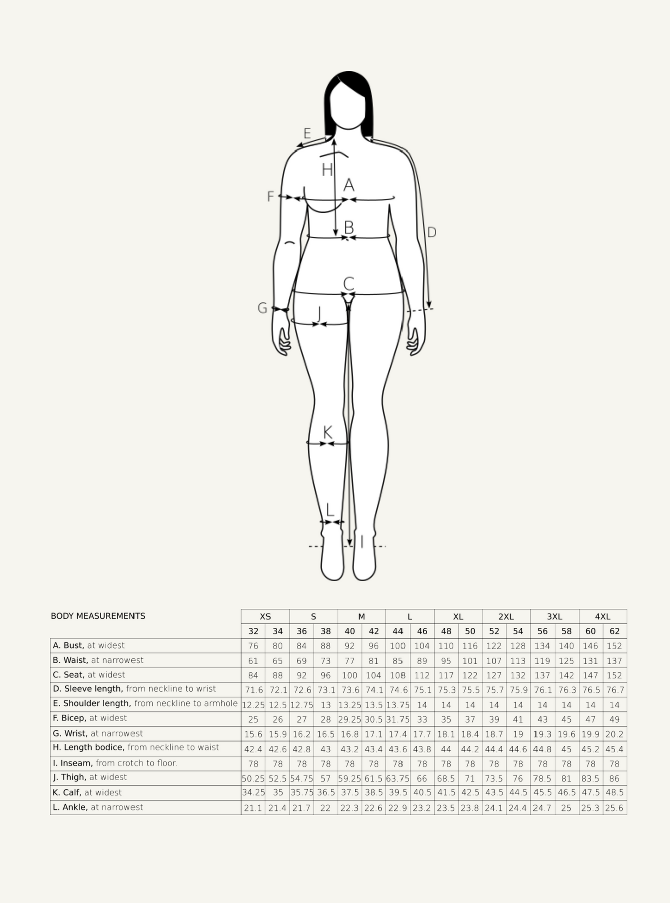 It´s available in 16 sizes, size 32-62, with bust measurements 76 cm to 152 cm. You will receive all sizes when purchasing this pattern.